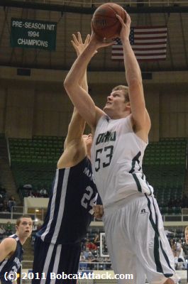 Ohio had more turnovers than Marietta, 15-11, but did not pressure its foe after building a big lead. The Bobcats won the battle on the boards, 49-35. Jon Smith led all players with nine boards – to go with four blocks – in 18 minutes.