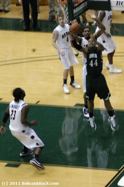 The Bobcats dominated in nearly every statistical category. They shot 51.8 percent from the field, including 56.3 percent in the first half. Ohio was 14 of 16 at the foul line, compared to 8 of 11 for Akron.