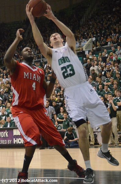 Ohio trailed nearly the entire game and was down 59-51 with 5:40 remaining after a Quinten Rollins layup. Adam Thomas scored in the paint with 3:08 remaining, putting the RedHawks up six, but the Bobcats came up big the rest of the way.