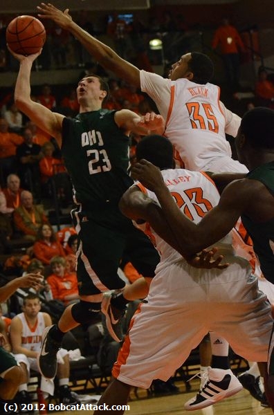 Ohio scored the game’s first six points, but Bowling Green eventually gook control, going up 17-12 on a Chauncey Orr 3-pointer. The Bobcats later led by as much as six, going on top with a Baltic three-point play and then a Cooper 3-pointer.