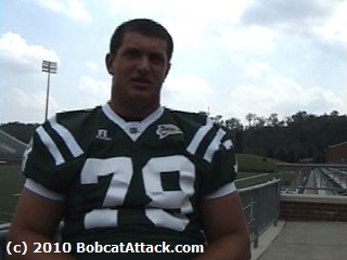 Offensive tackle Joe Flading moved into the starting lineup by the end of his freshman year. Last year, as a sophomore, garnered 3rd Team All-MAC honors. In 2010, Flading will be looked to as a leader of the Bobcats offensive line. The Cincinnati native talked about the upcoming season with BobcatAttack at the team's annual Media Day.