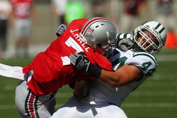 Ohio's offensive struggles continued in a 43-7 setback to 2nd-ranked Ohio St. Saturday afternoon in Columbus. The Bobcats turned the ball over five times vs. the Buckeyes and for the second straight week failed to top the 200-yard mark on offense. Ohio State's offense was running along quite smoothly scoring on its first six possessions. Buckeye quarterback Terrelle Pryor set a school record with 16 straight completions. On the afternoon, Pryor was 22-29 passing for 235 yards, two touchdowns and two interceptions.