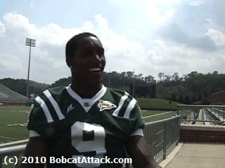 Senior cornerback Julian "Joonie" Posey enters 2010 with his name penned in as starter on the depth chart. Last year, in a backup role, Posey had 2 interceptions. He took one back 41 yards for a score against Northern Illinois and the other 59 yards and just short of a score vs. Kent State. Ohio coaches feel the talent is there for Posey to continue the solid cornerback play that the Bobcats have shown during the Solich regime. The Cincinnati LaSalle High School alum talked about the upcoming season with BobcatAttack at the team's annual Media Day.