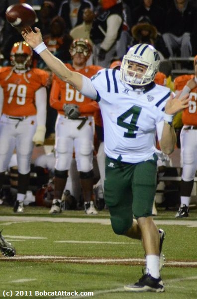 Ohio quarterback Tyler Tettleton has completed 63.7 percent of his passes for school single-season records of 2,649 yards and 23 touchdowns with just six interceptions. He also has been a running threat. coming off his best rushing game of the season, he has 465 yards and eight touchdowns on the ground.